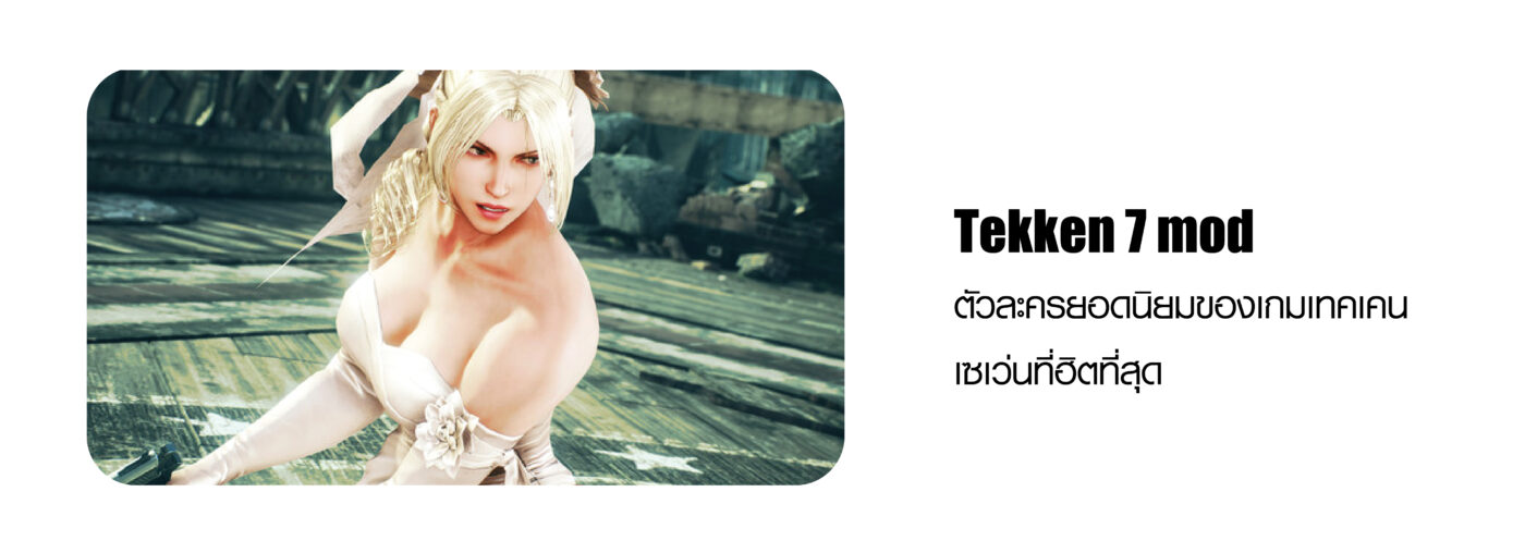 Tekken 7 mod ตัวละครยอดนิยมของเกมเทคเคน เซเว่นที่ฮิตที่สุด สำหรับดัดแปลงตัวละครให้ดูดียิ่งขึ้นไม่ว่าจะเป็นรูปร่างหน้าตาของตัวละคร ทำลื่นไหลของตัวละครเวลาต่อสู้ ทำให้เกมต่อสู้สนุกมากขึ้น รูปร่างของตัวละครมีลักษณะที่แตกต่างไปจากเดิมมีความเป็นอนิเมะแบบ 3 มิติมากขึ้นทำให้การเล่นเกมเทคเคนของผู้เล่นสนุกขึ้น