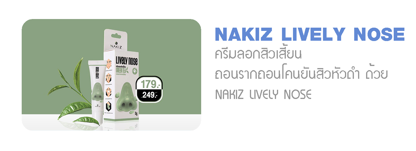 ครีมลอกสิวเสี้ยน ถอนรากถอนโคนยันสิวหัวดำ ด้วย Nakiz Lively Nose Green Tea สลายไขมันอุดตันตกค้างในรูขุมขนได้อย่างมีประสิทธิภาพ อุดมสารสกัดชาเขียว ช่วยจัดการสิ่งสกปรกจากมลภาวะที่ฝังลึก อุดมสารสกัดชาเขียว ช่วยจัดการสิ่งสกปรกจากมลภาวะที่ฝังลึก