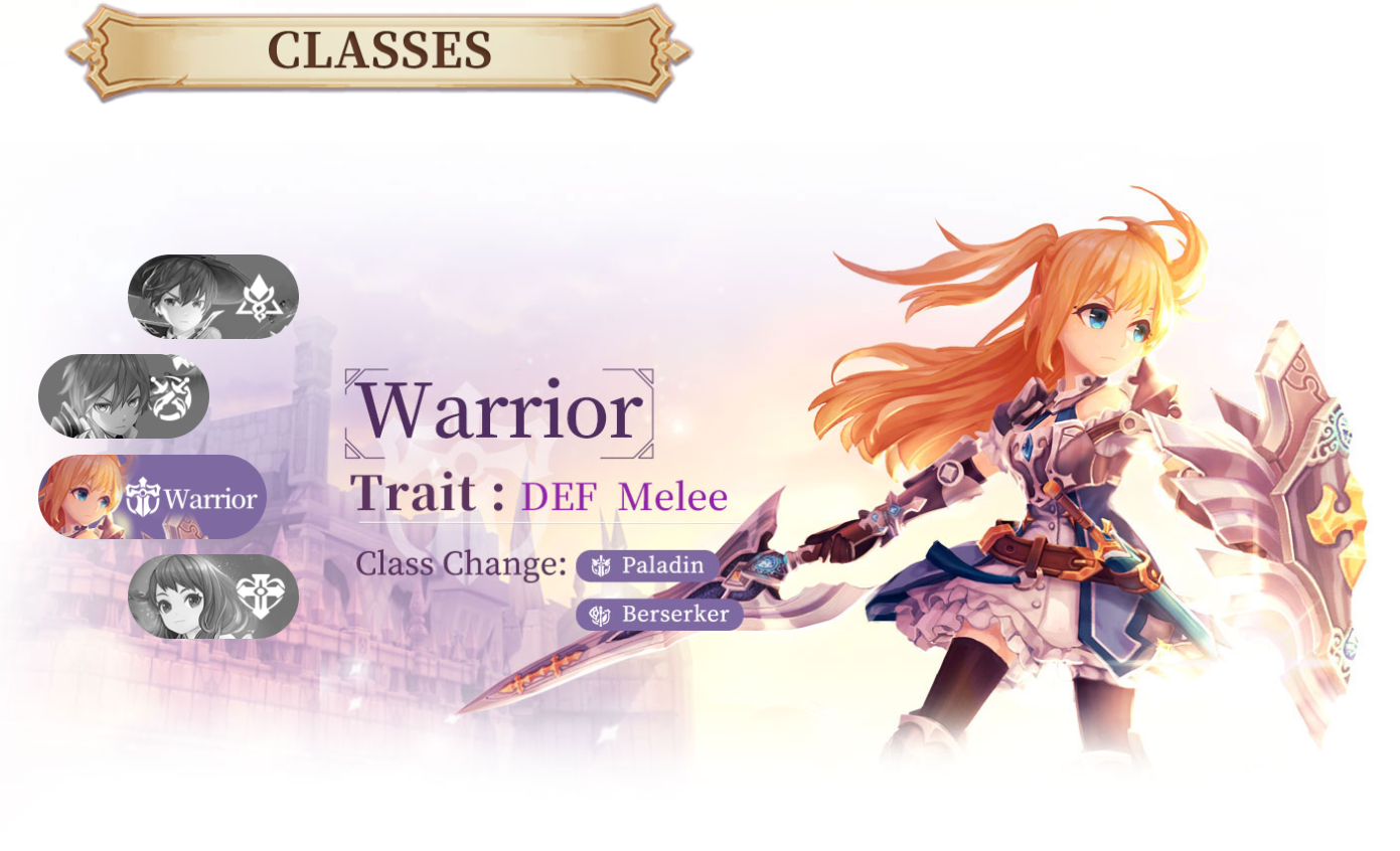 เป็นอาชีพที่ถนัดทั้งในการรุกโจมตีและตั้งรับ โดยมีพลังโจมตีสูง สามารถเข้าทำดาเมจหนักๆได้ต่อเนื่อง อีกทั้งในด้านของเกมรับก็สามารถทำได้เยี่ยมเช่นกันเพราะมีพลังป้องกันที่สูงทีเดียว และสำหรับสกิลพื้นฐานของอาชีพนี้ ได้แก่